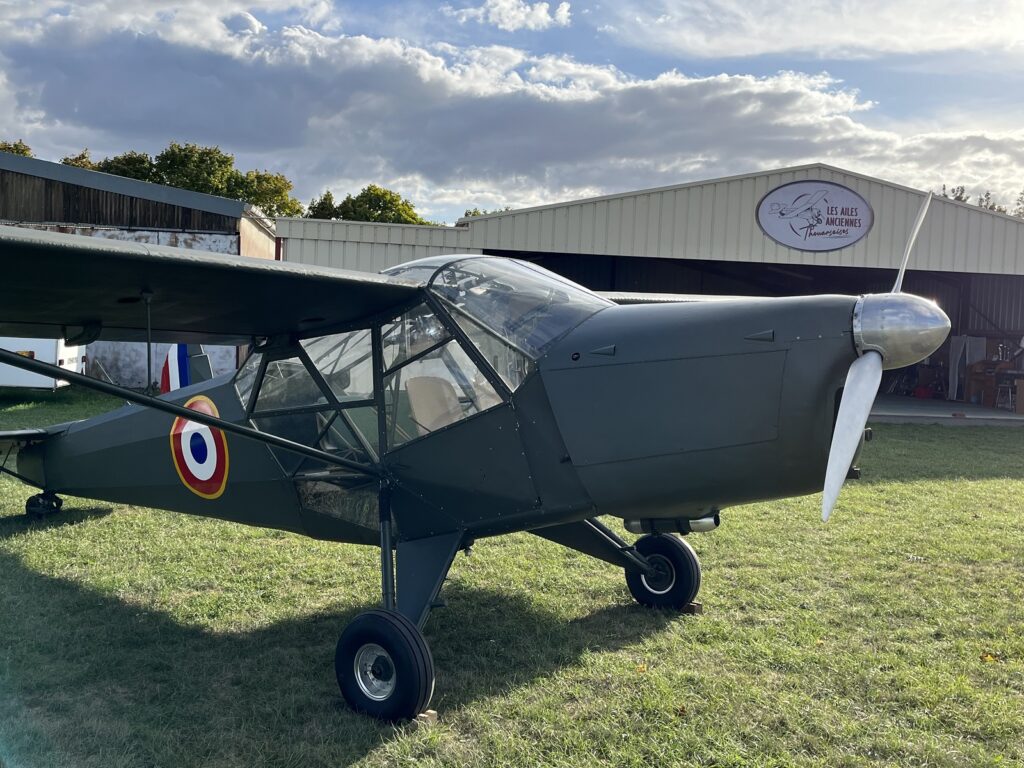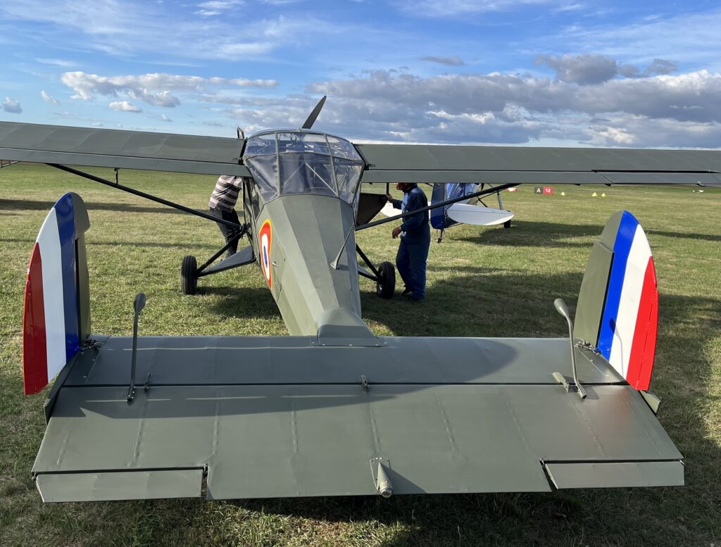 Lundi 22 septembre, 18h. Le Norvigie muni de ses ailes complètes (avec volets et ailerons) s’apprête à rouler sur l’aire de manoeuvre devant le hangar. A ses commandes, Jean-François bien sûr mais accompagné de Paul, un nouveau membre des Ailes Anciennes Thouarsaises.